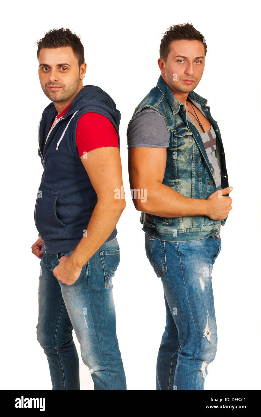 Two Models Men In Jeans Posing Isolated On White Background Stock
