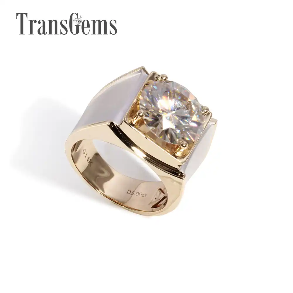 Transgems 3 Carat Solid 585 Gold Classic Men S Ring Subtle Genuine Moissanite Engagement Ring For Men Popular Design Ring