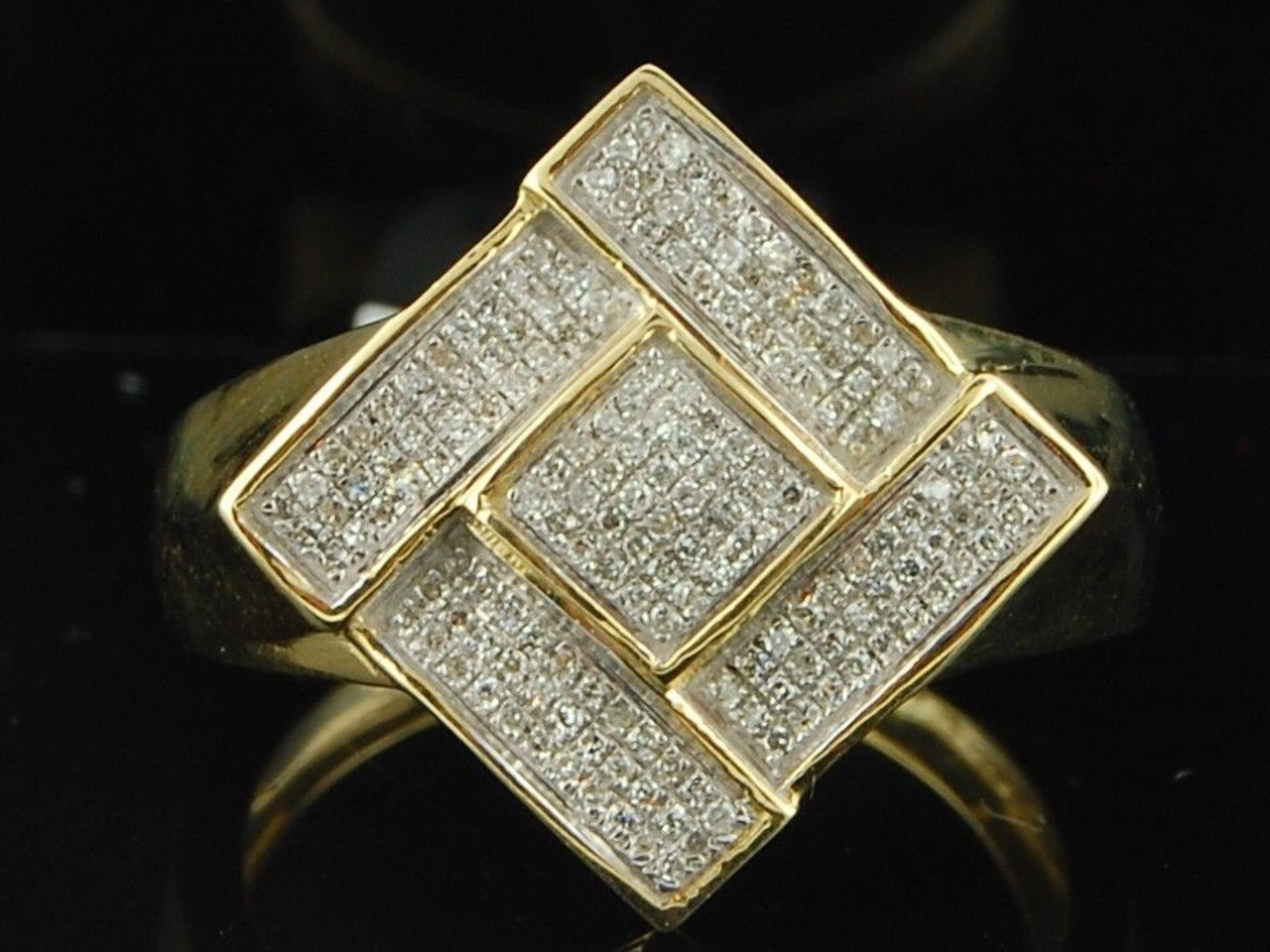 Diamond Pinky Ring Designer Mens 10k Yellow Gold Square Statement Band 0 33 Ct