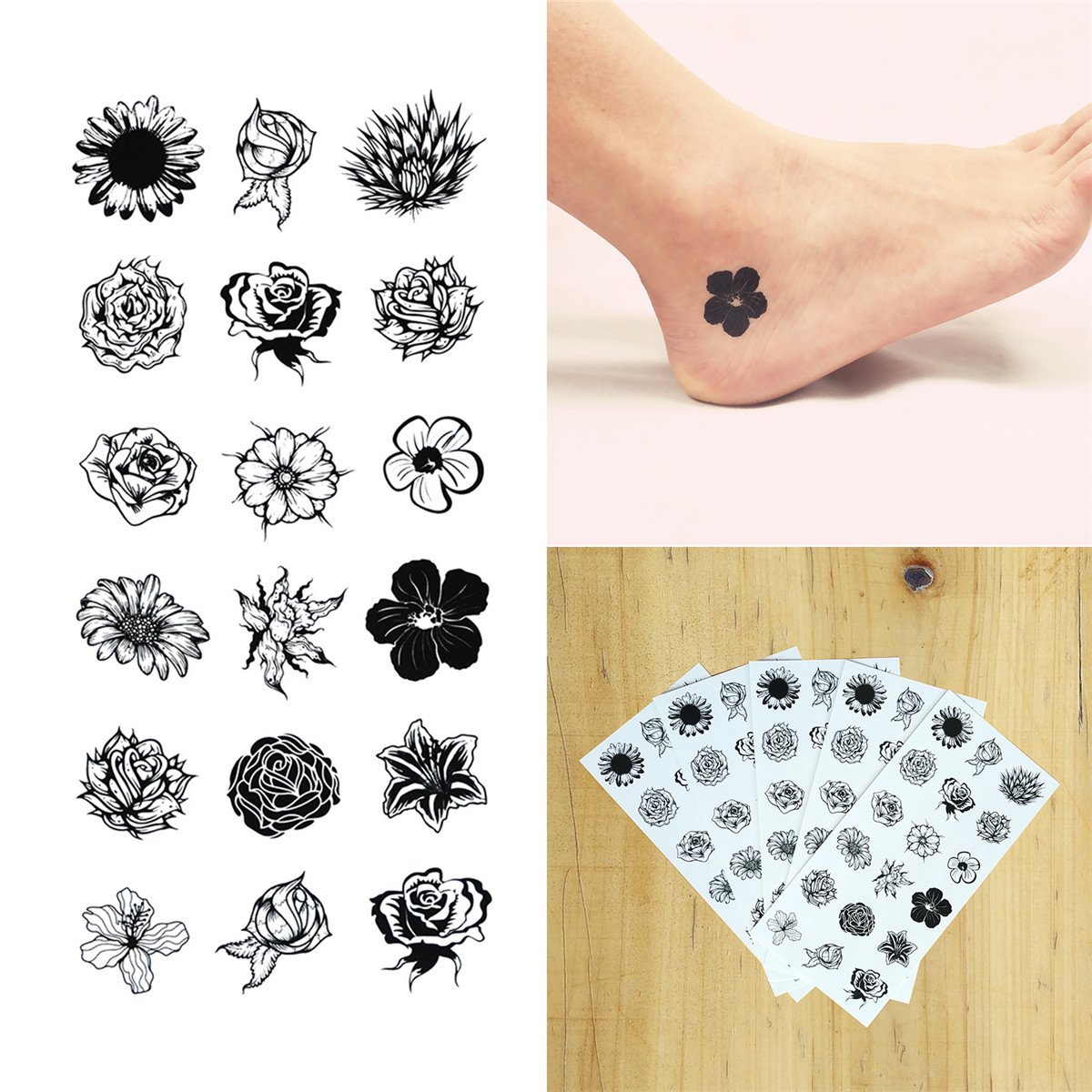 Cokohappy 5 Sheets Temporary Tattoo Small Black Flower For Women Girls Lower Back Shoulder Neck Arm Floral