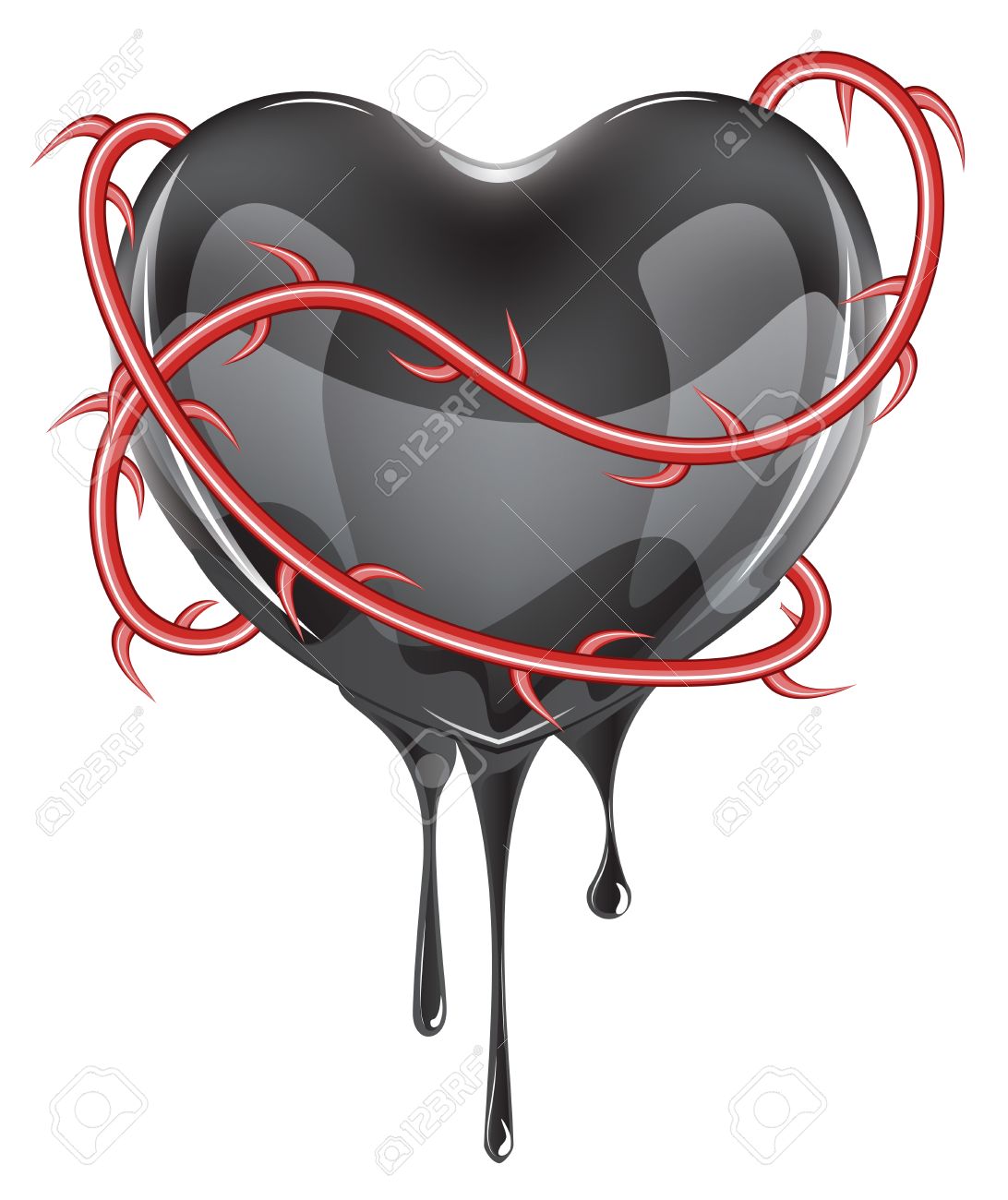 Black Bleeding Heart Icon With Red Rose Thorns On White Background