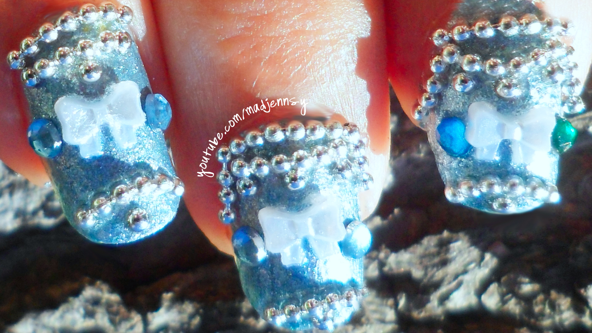 Eclectic winter nails with gem stones.