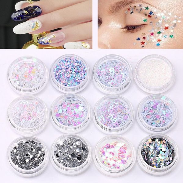 12box Set Nail Sequins Star 4mm Glitter Stars Eyeshadow Face Body Hair Nails Art Gems Glitter Stars Sequins Studs Manicure Craft